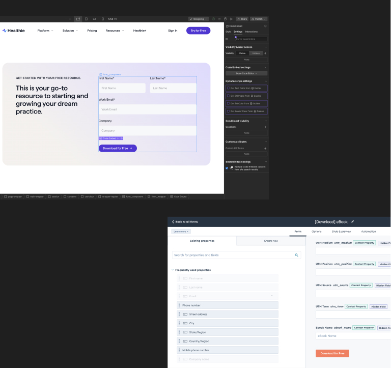 We handle the technical setup to seamlessly connect Webflow with your stack—including CRMs (HubSpot, Salesforce), Data tools (Airtable), and Analytics (Hotjar, Optimizely).
